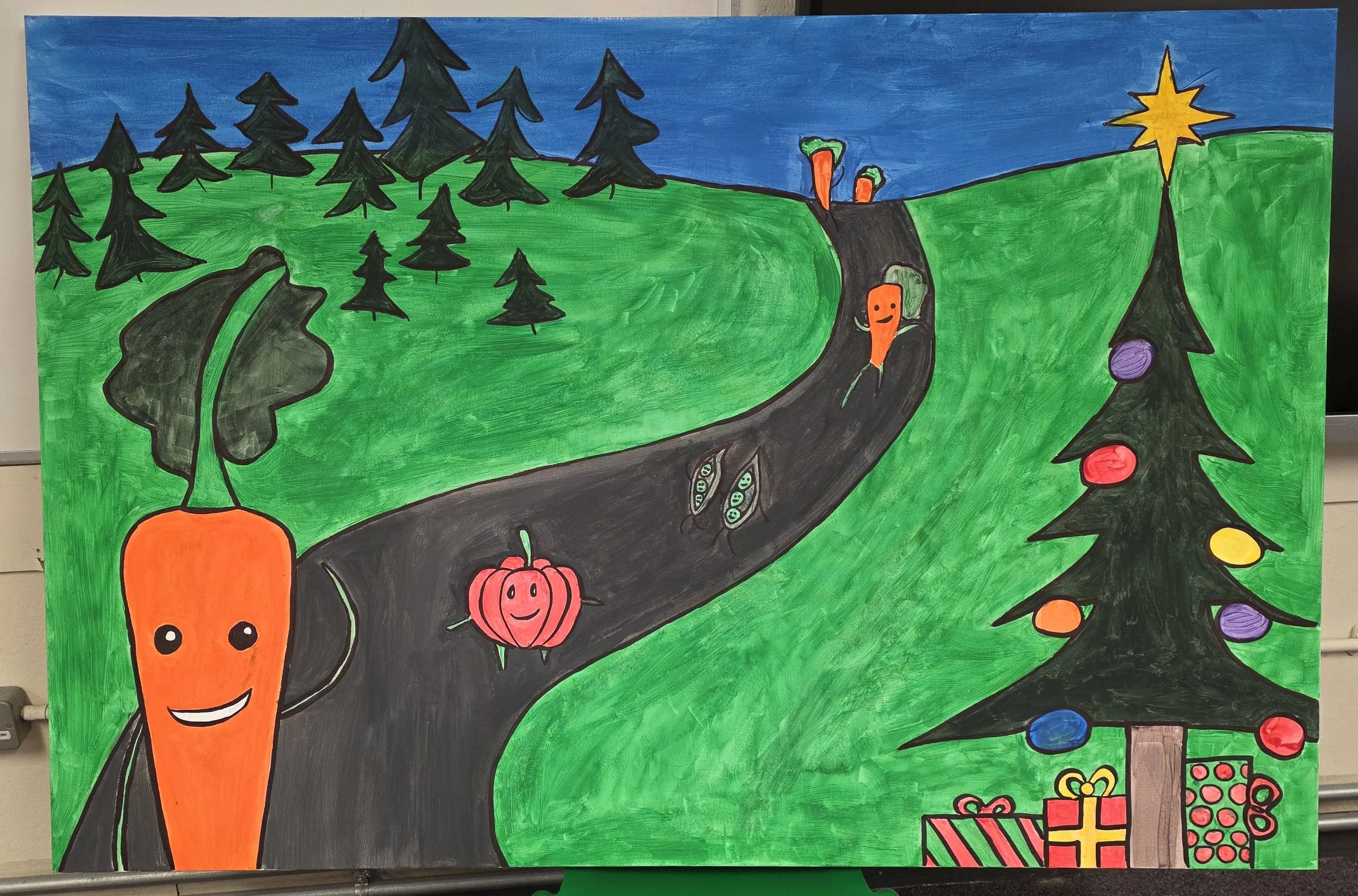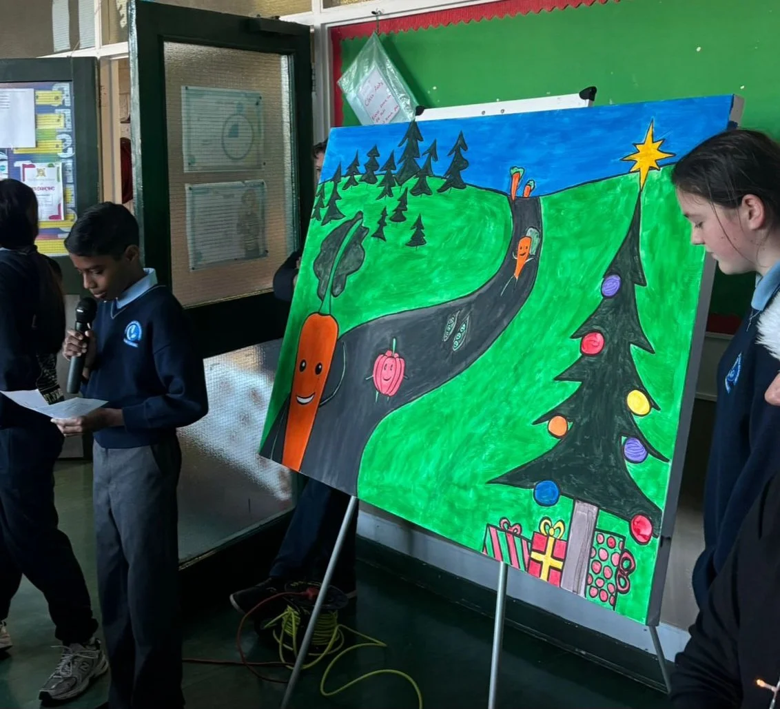 In the run up to Christmas in here in St. Fergal's, 3 children, along with their teacher, worked together to create a wonderful painting of Kevin the Carrot which will be enjoyed by the St. Fergal's community for many years to come!